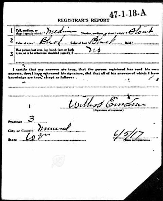 U.S. WW2 Draft Registration Cards, 1942. President Truman desegregated the military officially in 1948. Notice the WW2 enlistment card is in contact, no corners clipped. Grandpa was 5 ft and 4 inches.