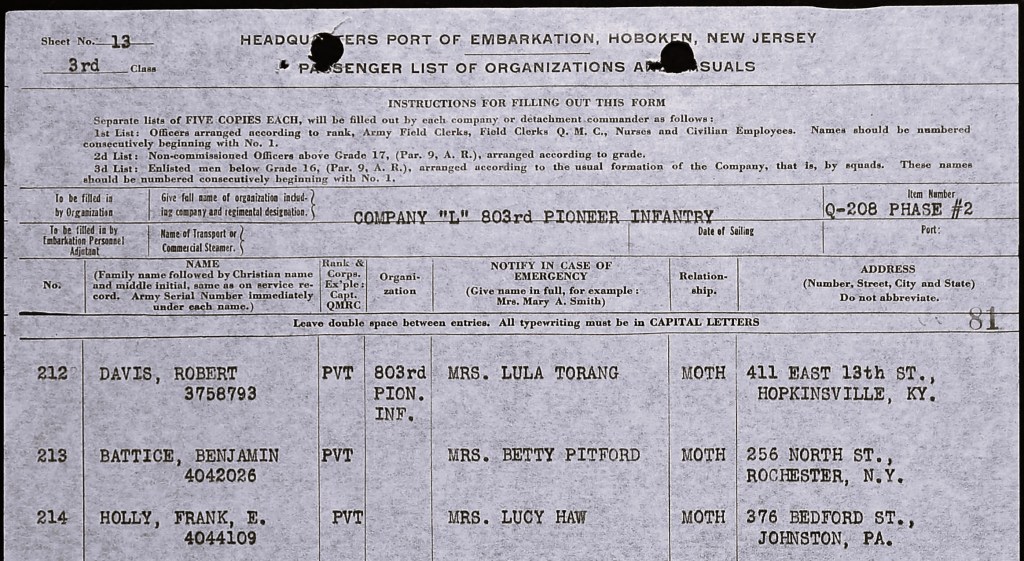 U.S. Army Transportation Service Arriving and Deporting lists, 1910 -1939.